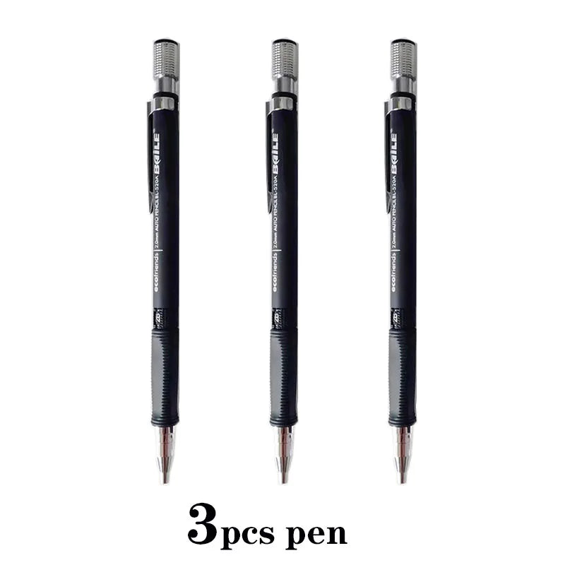 2.0 Mechanical Pencils Non-Slip For Paint Write Black Color 2mm Mine 2B Leads Art Pen Replaceable Refill Student School