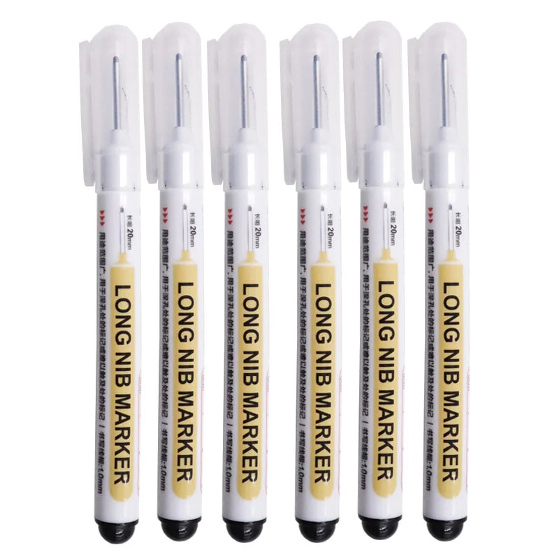 8/6pcs 20mm Deep Hole Marker Long Tip Head Thin Marking Pen For Workshop Construction Plates Metal Scribe Waterproof Engineering