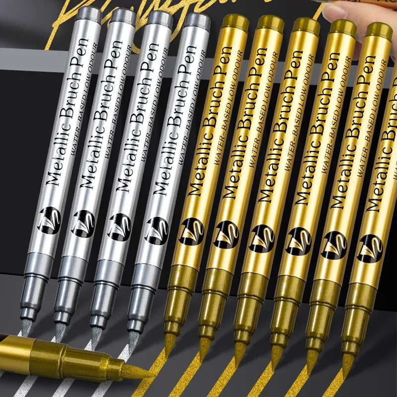 8pcs/set Gold Silver Metallic Marker Pen Waterproof Permanent Paint Marker Pen for Rock, Mug, Ceramic, Glass DIY Painting